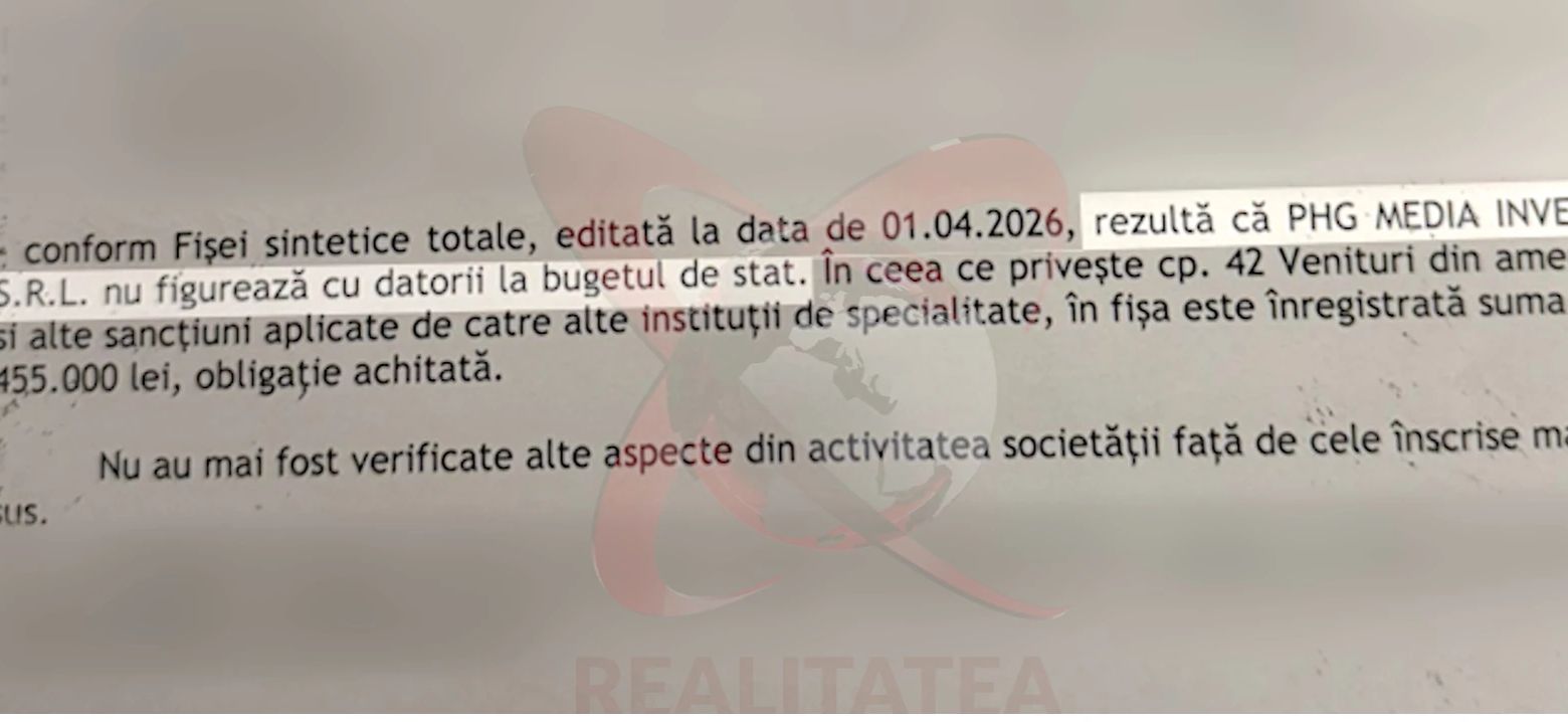 Cei de la ANAF, prin procesul-verbal, arată foarte clar ceea ce noi v-am arătat în ultima perioadă, și anume că postul nostru de televiziune, firma care a înregistrat postul de televiziune Realitatea Plus, nu are datorii la Statul Român. Scrie negru pe alb acest lucru.”