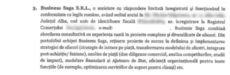 Firma Saga S.R.L. se laudă că ar combina abordarea consultativă cu experiența vastă în proiecte complexe și diversificate de afaceri: strategie de intrare pe piață, integrare post achiziție/fuziune, analize de piață, modelare financiară și ajutoare de stat.