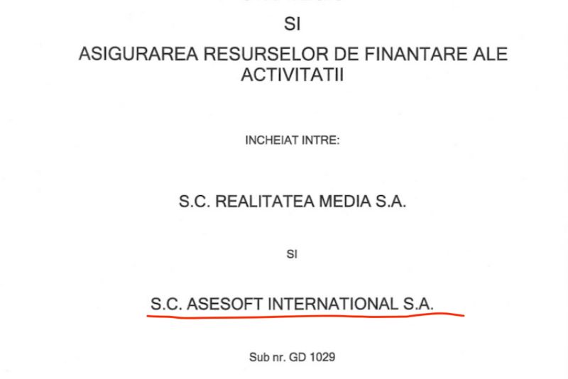 În luna octombrie a anului 2010, ASESOFT INTERNATIONAL SA a încheiat cu REALITATEA MEDIA SA un contract pentru servicii de consultanță și management strategic, prin care urma să asigure resursele de finanțare ale companiei de televiziune. Firma afaceristului fugar anunța public la acea vreme că intenționa să investească zeci de milioane de euro în grupul controlat la acea vreme de Sorin Ovidiu Vîntu.