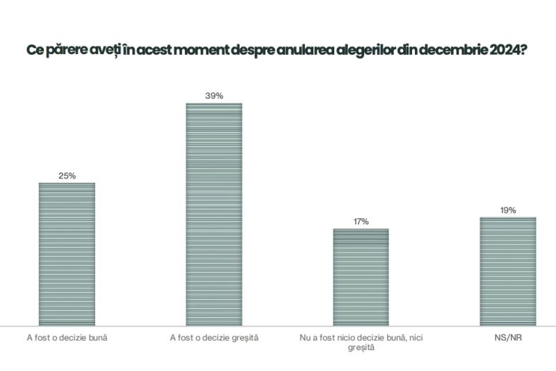 Cât despre anularea alegerilor din 2024, românii cred că a fost o decizie greșită.