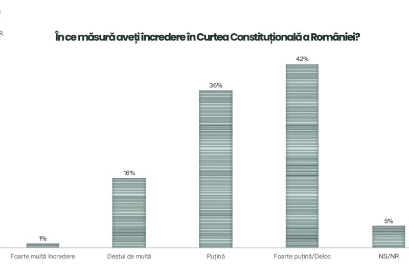 Întrebați în ce măsură au încredere în Curtea Constituțională, 42% dintre respondenți au răspuns "foarte puțină/deloc", în timp ce doar 16% au "destul de multă și 1% - "foarte multă".